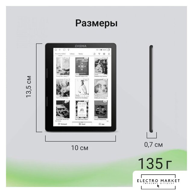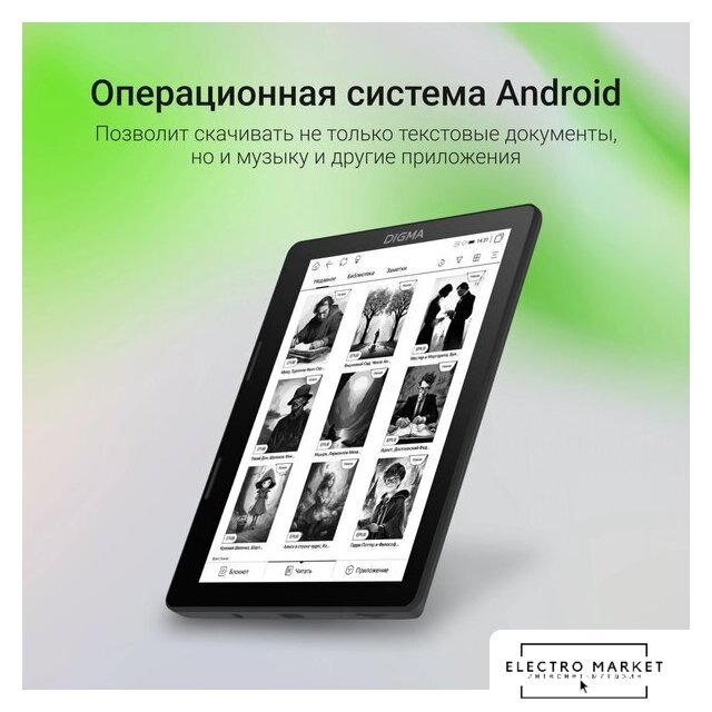 экран 6" E-Ink Pearl HD, 758 x 1024, память 4 Гб, карты памяти