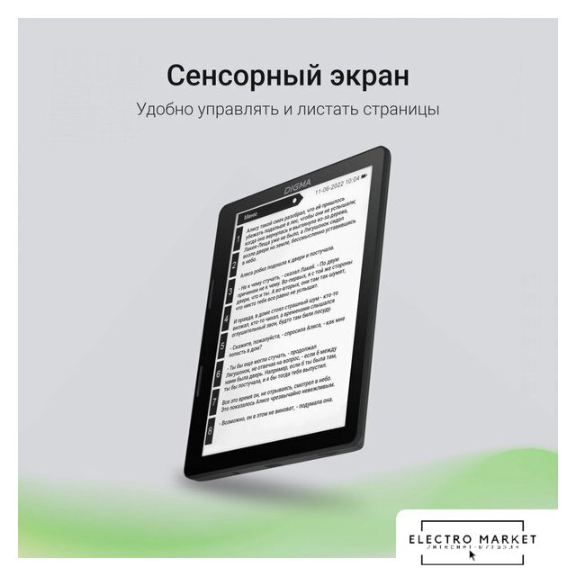 экран 6" E-Ink Carta, 768 x 1024, сенсорный, с подсветкой, память 8 Гб, Wi-Fi