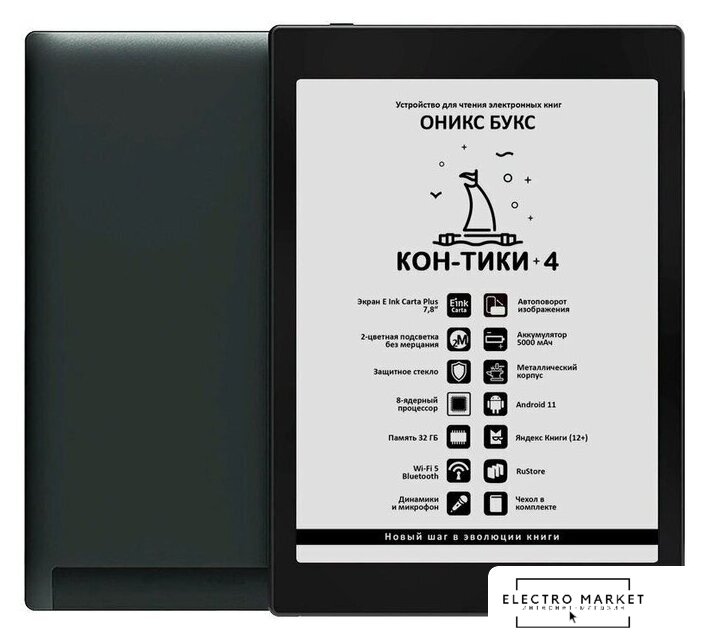 экран 6.13" E-Ink Carta Plus, 824 x 1648, сенсорный, с подсветкой, память 128 Гб, камера, карты памяти, Wi-Fi