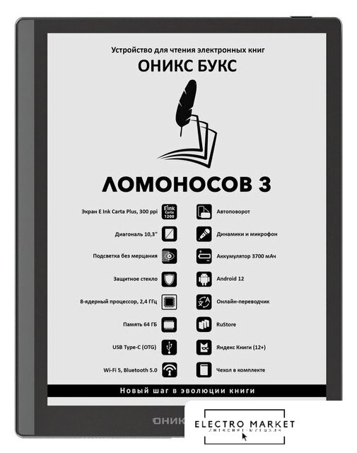 экран 10.3" E-Ink Carta Plus, 1860 x 2480, сенсорный, память 64 Гб, Wi-Fi