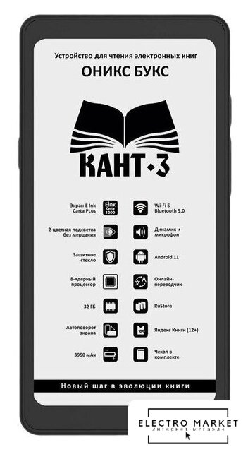 экран 6" E-Ink Carta Plus, 1072 x 1448, сенсорный, с подсветкой, память 32 Гб, карты памяти, Wi-Fi
