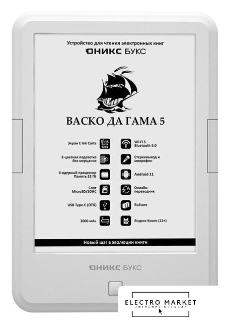 экран 6" E-Ink Carta, 758 x 1024, сенсорный, с подсветкой, память 32 Гб, карты памяти, Wi-Fi