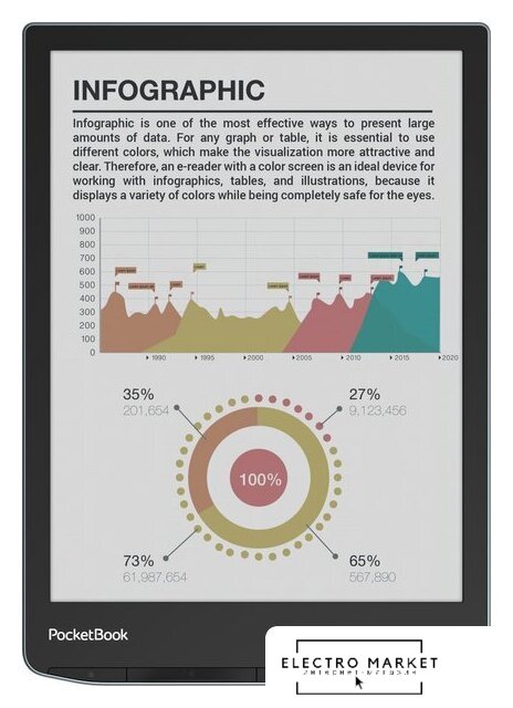экран 7" E-Ink Kaleido 3, цветной экран, 1680 x 1264, сенсорный, с подсветкой, память 64 Гб, карты памяти, Wi-Fi