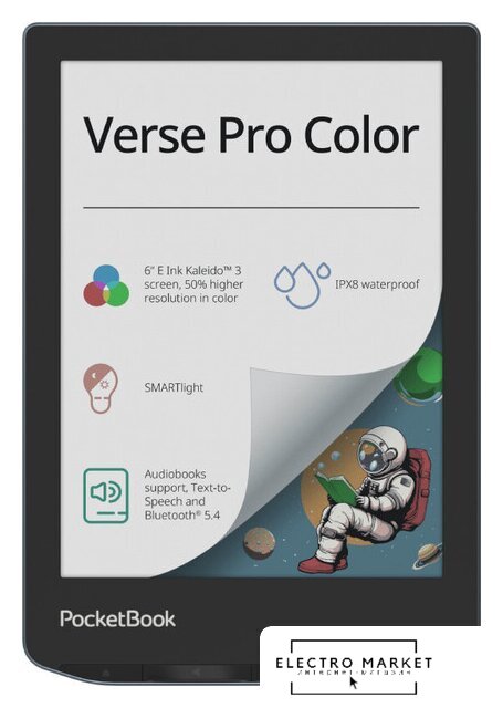 экран 6" E-Ink Carta, 1072 x 1448, сенсорный, с подсветкой, память 16 ГБ, Wi-Fi