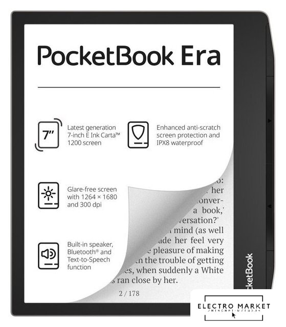 экран 7" E-Ink Kaleido 3, цветной экран, 1264 x 1680, сенсорный, с подсветкой, память 32 Гб, Wi-Fi