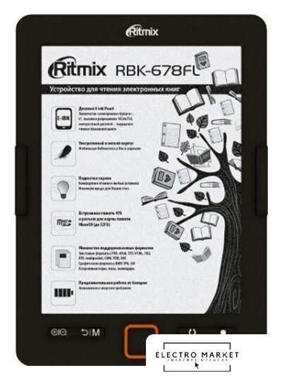 экран 6" E-Ink Carta, 758 x 1024, сенсорный, с подсветкой, память 8 Гб, карты памяти, Wi-Fi