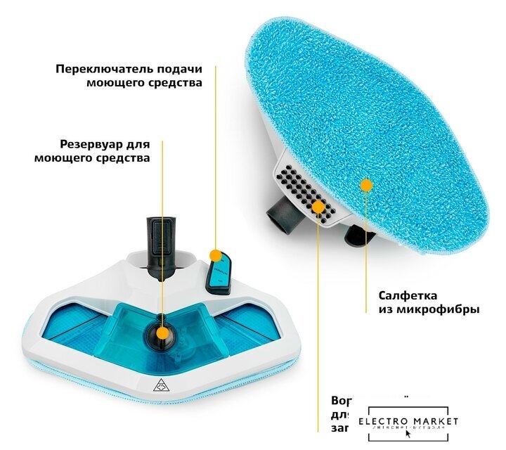 электрошвабра, 1500 Вт, пар 28 г/мин, бак 0.37 л
