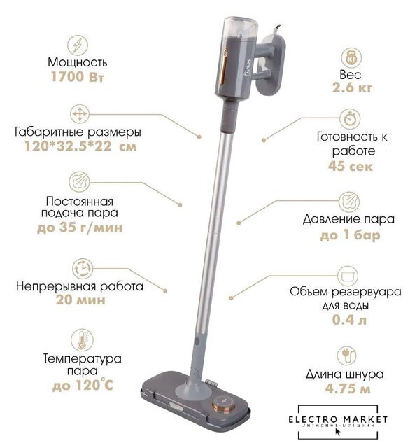 | Время нагрева паровой швабры | 0.75 мин (45 сек) |
