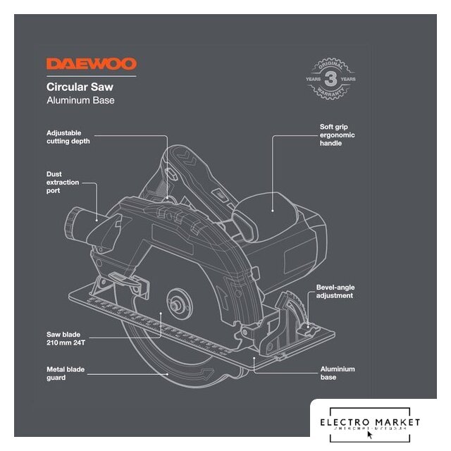 | Комплектация | - Пила циркулярная - 1 шт.- Параллельная направляющая - 1 шт.- Пильный диск - 1 шт.- Шестигранный ключ - 1 шт.- Адаптер подключения пылесоса - 1 шт.- Руководство по эксплуатации- Коробка |