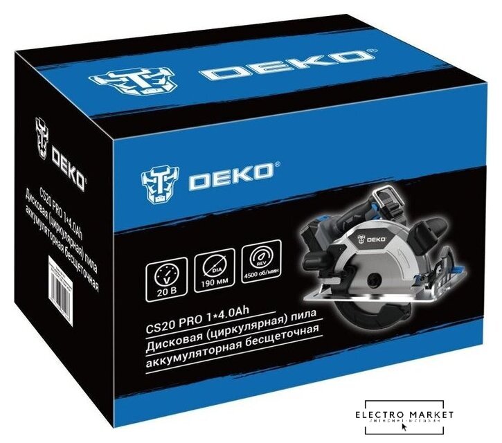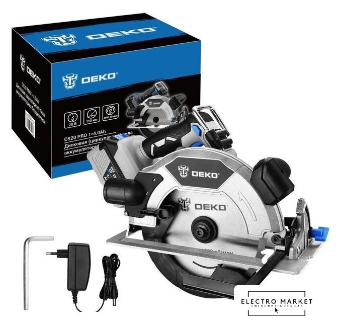 | Комплектация | - Циркулярная пила – 1 шт.- Распиловочный диск - 1 шт .- Аккумулятор – 1 шт.- Зарядное устройство – 1 шт .- Параллельный упор – 1 шт .- Шестигранный ключ – 1 шт .- Руководство по эксплуатации- Коробка |