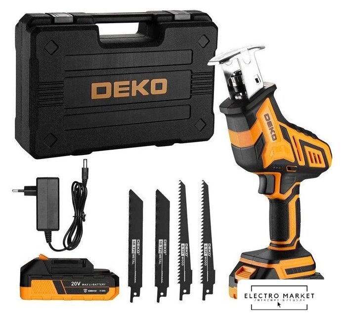 | Комплектация | - 1 шт сабельная пила;- 2 шт аккумулятор;- 1 шт зарядное устройство;- 4 шт пильное лезвия;- 1 шт руководство по эксплуатации;- 1 шт кейс. |