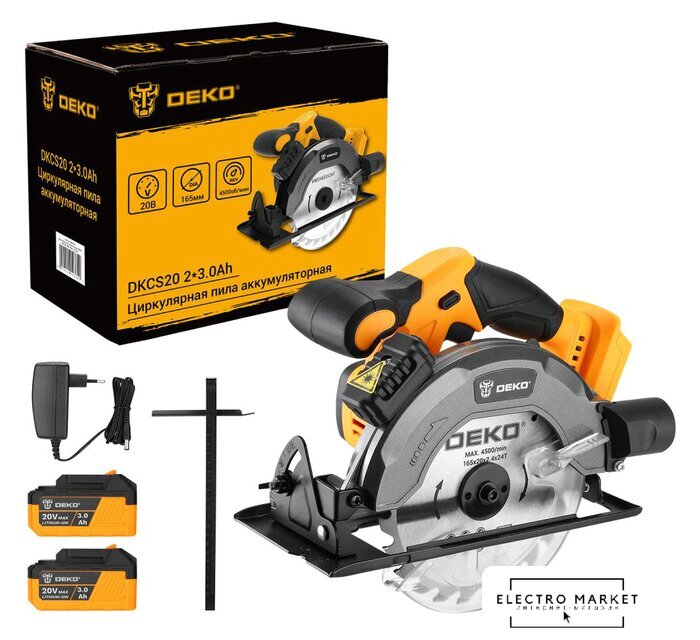 | Комплектация | Циркулярная пила – 1 шт.Аккумулятор 3,0 Ач - 2 шт.Зарядное устройство – 1 шт.Параллельный упор – 1 шт.Шестигранный ключ – 1 шт.Руководство по эксплуатации – 1 шт. |