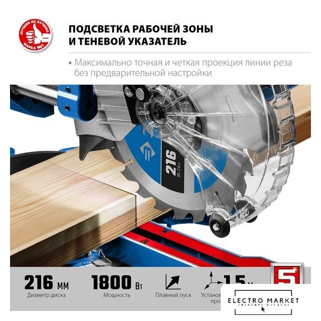 торцовочная, питание: сеть, 1500 Вт, диаметр диска: 210 мм, 5000 об/мин
