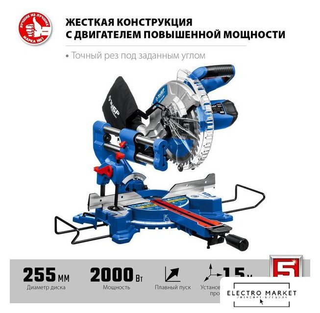 торцовочная, 2000 Вт, питание: сеть, диаметр диска: 255 мм, 4500 об/мин