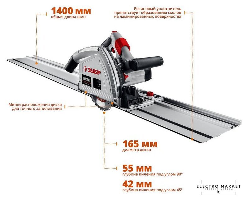| Комплектация | Пила циркулярная;Диск (установлен);Направляюща шина - 2шт 70 см;Соединитель направляющих;Зажим - 2шт;Патрубок пылеотводный - 2шт D32, D35;Ключ имбусовый - 2;Руководство по эксплуатации. |
