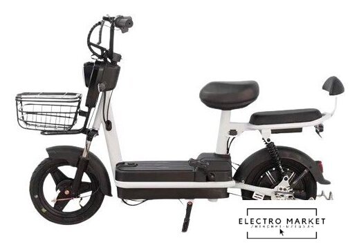 взрослый/подростковый (макс. 150 кг), до 35 км/ч, мощность 350 Вт, запас хода 35 км, колеса 14"/14"
