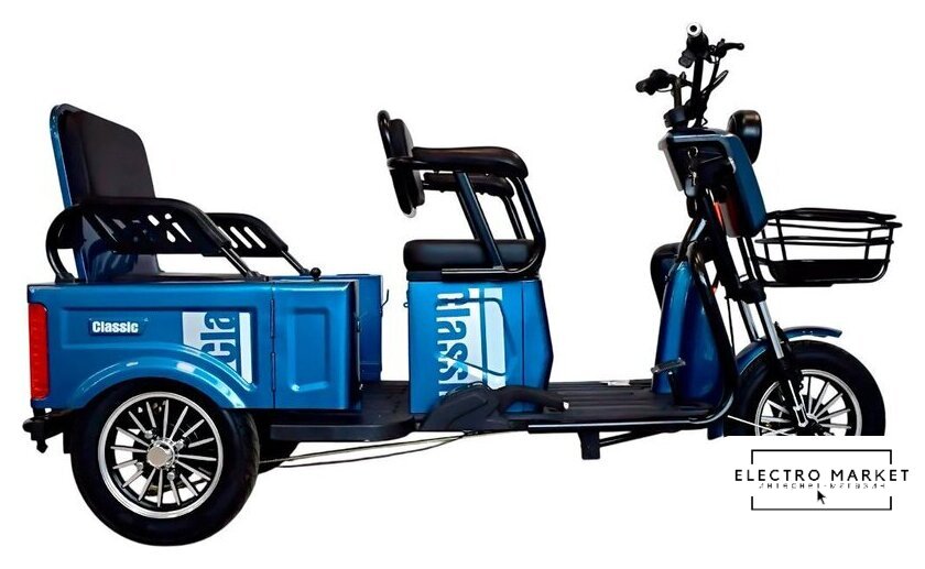 взрослый/подростковый (макс. 200 кг), до 55 км/ч, мощность 1500 Вт, запас хода 60 км, аккумулятор 20 А·ч, задний привод, вес 78 кг