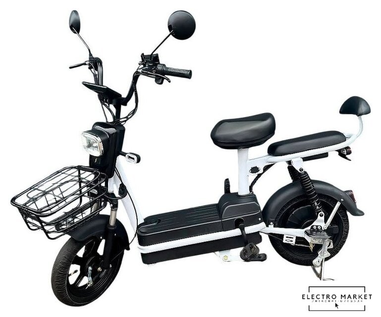 взрослый/подростковый (макс. 150 кг), до 25 км/ч, мощность 250 Вт, запас хода 35 км, аккумулятор 12 А·ч, задний привод, колеса 14"/14"
