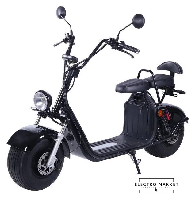 взрослый/подростковый (макс. 200 кг), до 25 км/ч, мощность 1000 Вт, запас хода 60 км, аккумулятор 20 А·ч, задний привод, колеса 14"/14", вес 78 кг