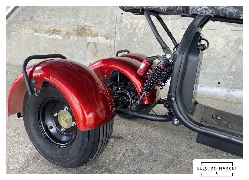 взрослый/подростковый (макс. 200 кг), до 25 км/ч, мощность 600 Вт, запас хода 55 км, аккумулятор 20 А·ч, задний привод, колеса 10"/10", вес 72 кг