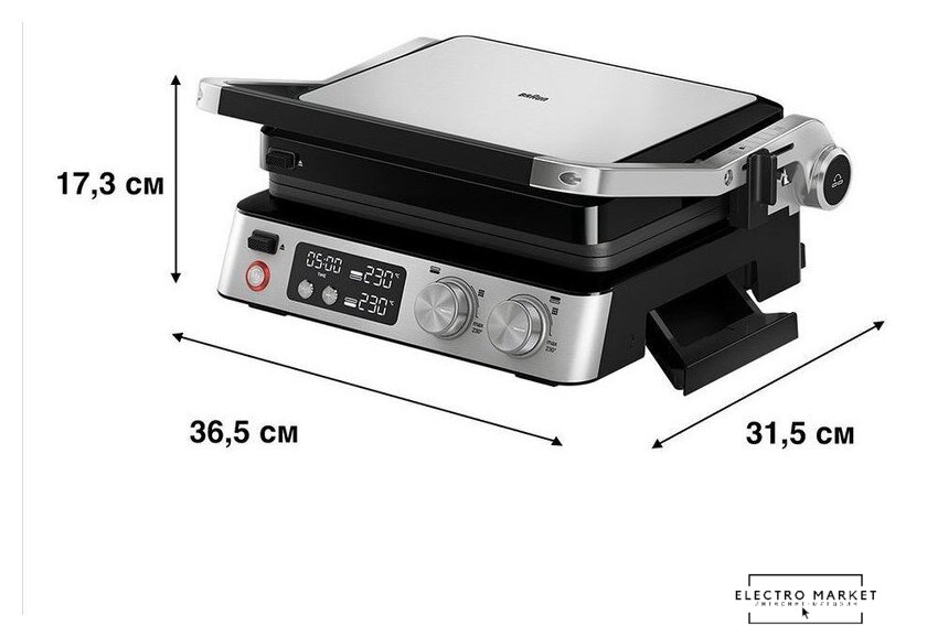 2000 Вт, универсальный, двухсторонний (гриль-пресс), габариты 365x460 мм, рабочая поверхность 370x230 мм