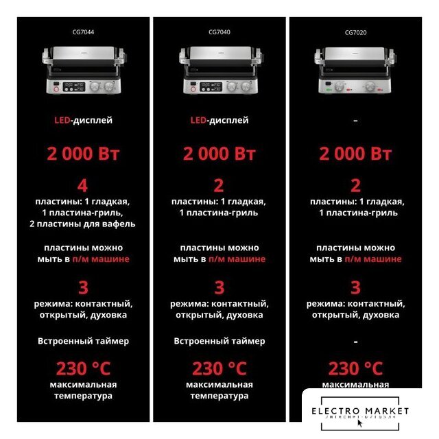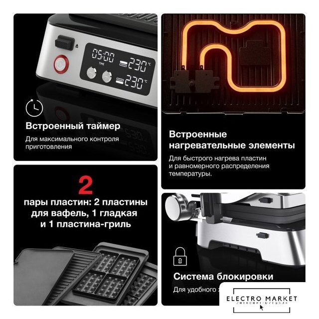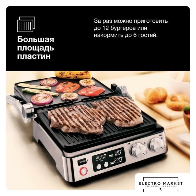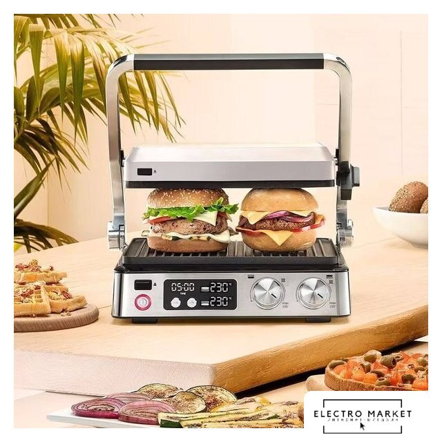2000 Вт, универсальный, двухсторонний (гриль-пресс), габариты 365x460 мм, рабочая поверхность 370x230 мм