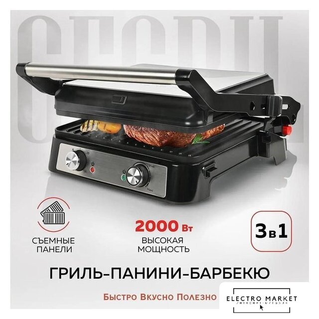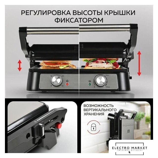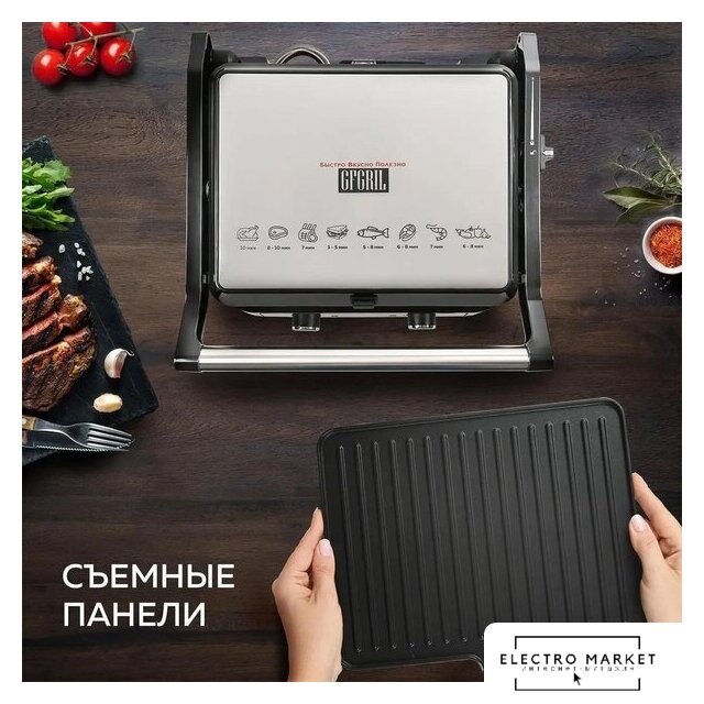 2000 Вт, универсальный, двухсторонний (гриль-пресс), габариты 440x618 мм