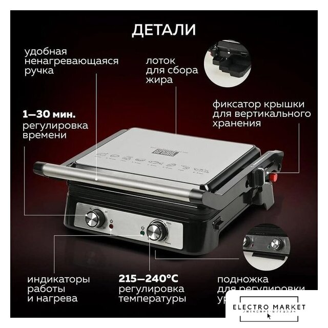 | Конструкция | двухсторонний (гриль-пресс) |