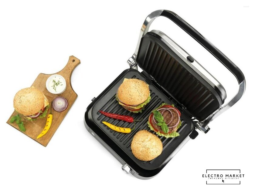 2000 Вт, универсальный, двухсторонний (гриль-пресс), габариты 315x365 мм, рабочая поверхность 290x230 мм