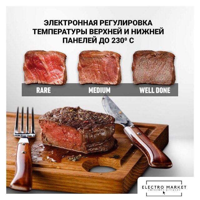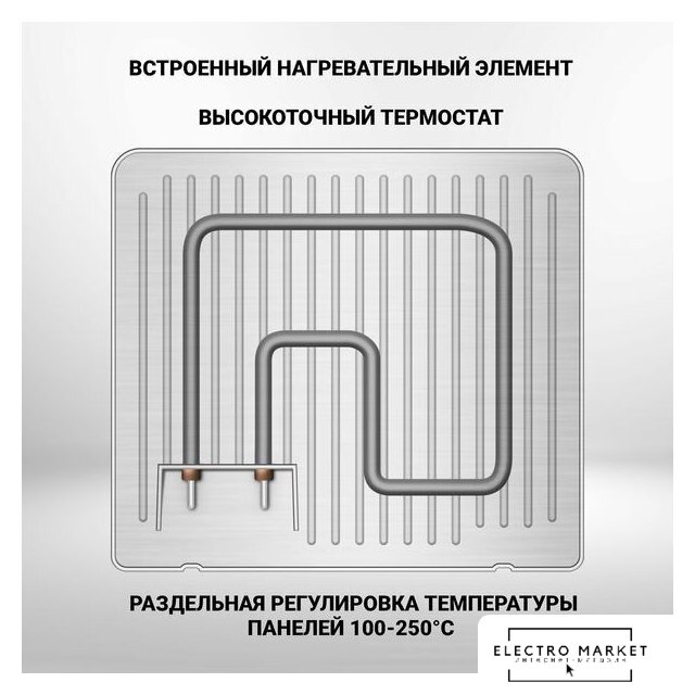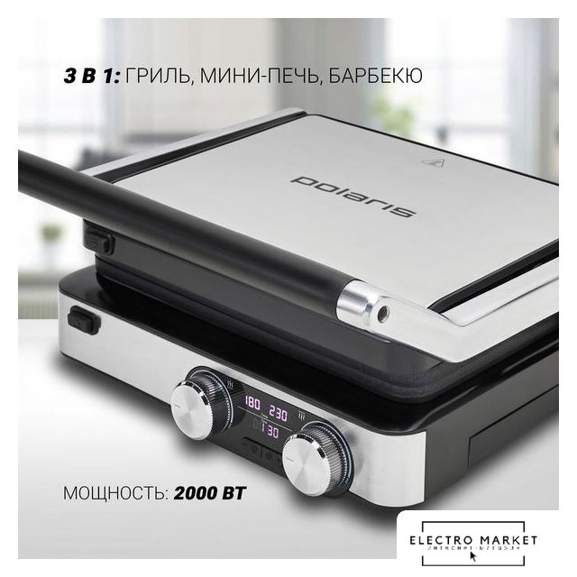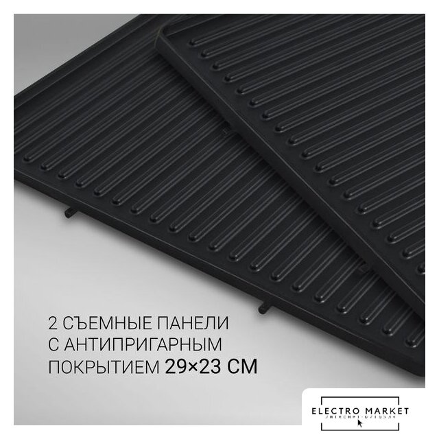 2000 Вт, универсальный, двухсторонний (гриль-пресс), габариты 348x319 мм, рабочая поверхность 290x230 мм