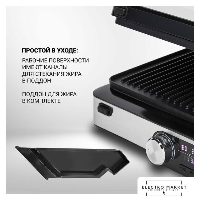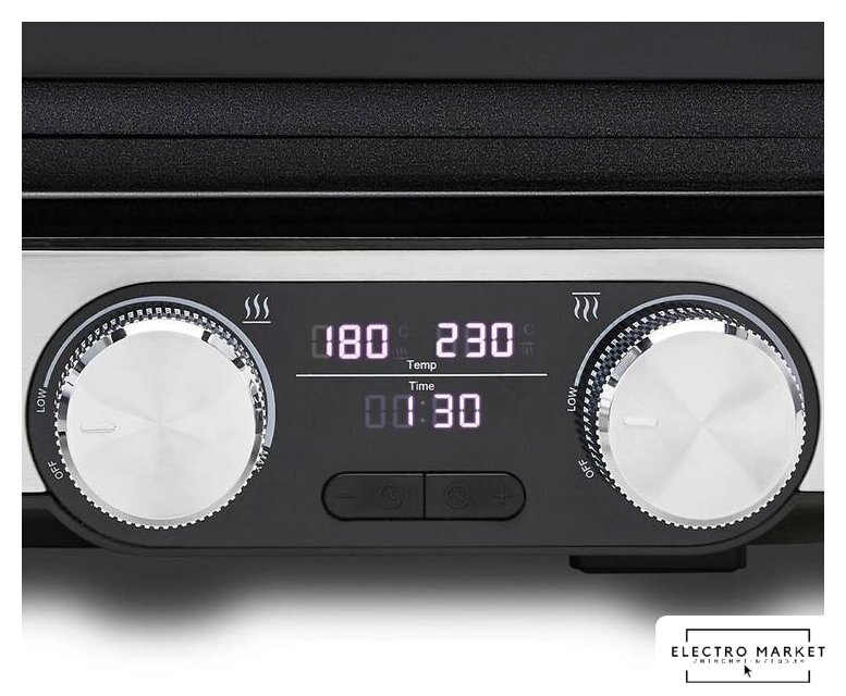 2300 Вт, универсальный, двухсторонний (гриль-пресс), габариты 315x358 мм, рабочая поверхность 298x220 мм