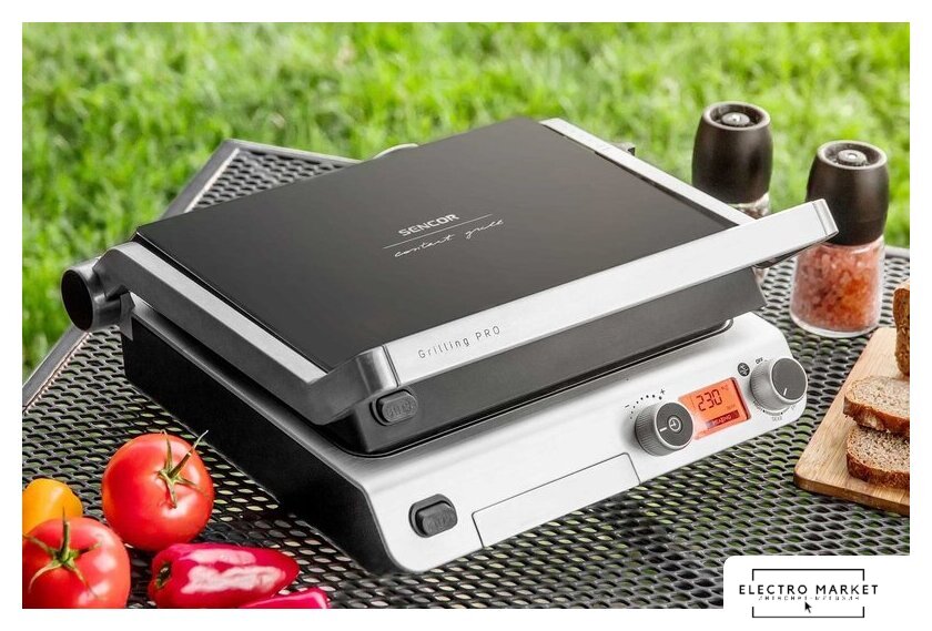 2000 Вт, универсальный, двухсторонний (гриль-пресс), габариты 352x344 мм, рабочая поверхность 320x220 мм