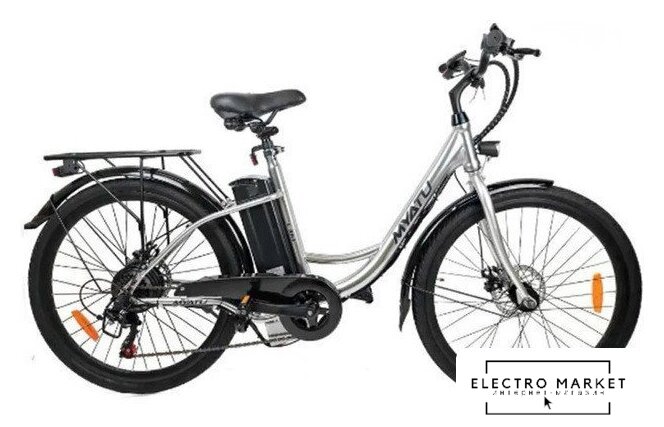 городской, двухподвес, материал рамы: сталь Hi-ten, колеса 24", вилка амортизационная, трансмиссия 1 скор., тормоза дисковый механический + дисковый механический, вес 36 кг
