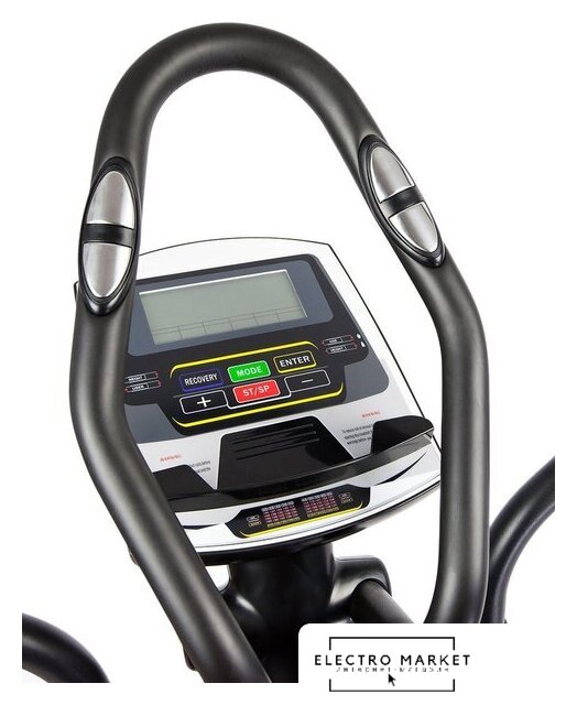 электромагнитная нагрузка, инерционная масса маховика 27 кг, маховик 9 кг, длина шага 43 см, масса пользователя до 135 кг