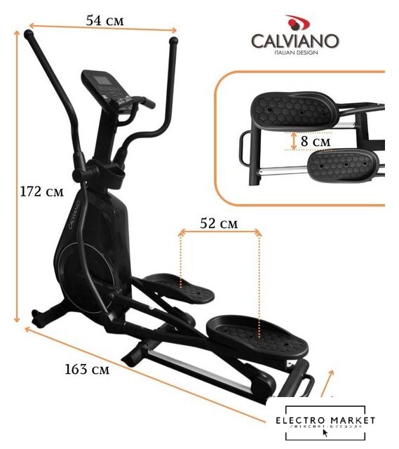электромагнитная нагрузка, длина шага 50 см, масса пользователя до 130 кг