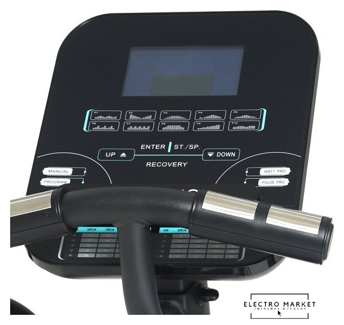 эргометр, электромагнитная нагрузка, маховик 7 кг, длина шага 42 см, масса пользователя до 120 кг, нагрузка 35-350 Вт