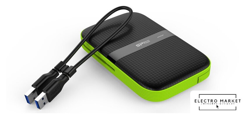 HDD, USB 3.2 Gen1 (5 Гбит/с), 2.5", пластик/резина, USB 3.0, цвет зеленый/черный
