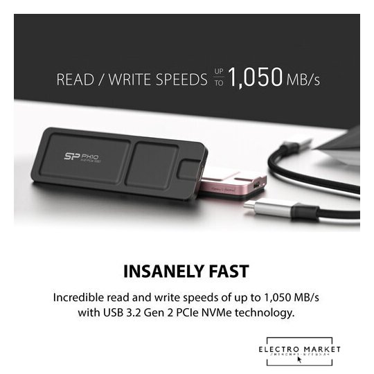 SSD, USB 3.2 Gen2x2 (20 Гбит/с), металл/пластик, цвет серый/черный