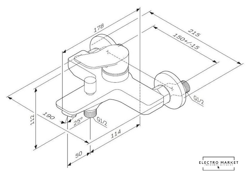 однорычажный смеситель для ванны и душа, монтаж на стену