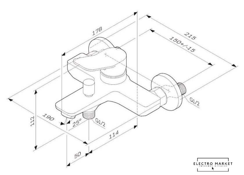 однорычажный смеситель для ванны и душа, монтаж на стену