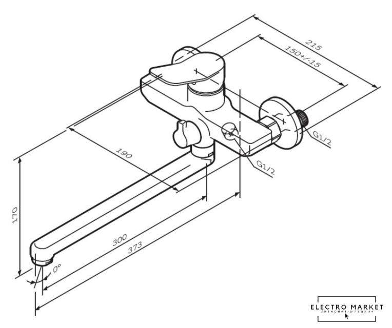 однорычажный смеситель для ванны и душа, монтаж на стену