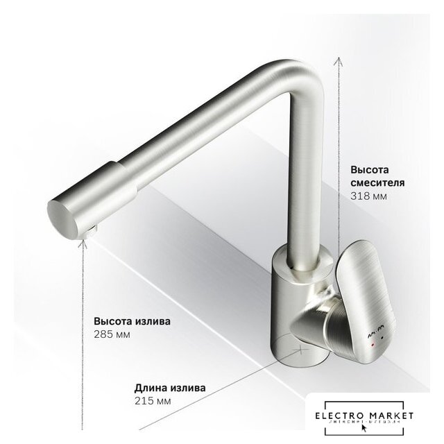однорычажный смеситель для кухни, монтаж на раковину или столешницу