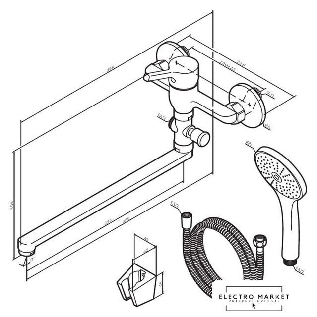 однорычажный смеситель для ванны и душа, монтаж на стену