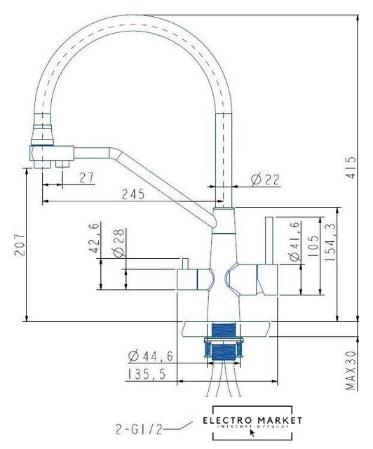 однорычажный смеситель для кухни, монтаж на раковину или столешницу