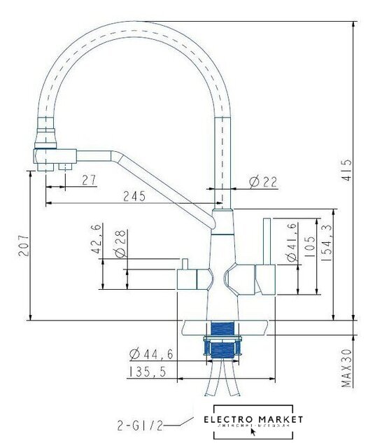| Высота излива | 207 мм |