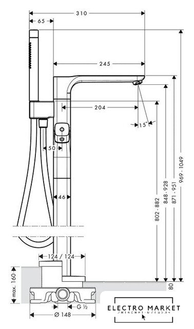 однорычажный смеситель для отдельностоящей ванны, монтаж на пол