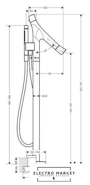 однорычажный смеситель для отдельностоящей ванны, монтаж на пол