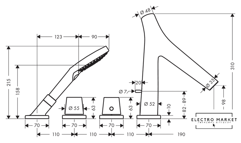 однорычажный смеситель для отдельностоящего умывальника, монтаж на пол