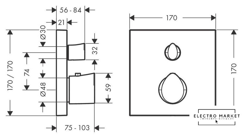 термостатический смеситель для душа, монтаж скрытый