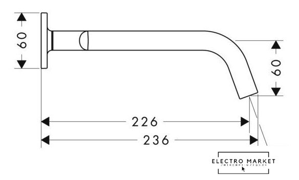 | Длина (вылет) излива | 226 мм |